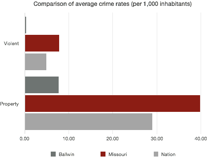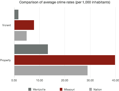 Missouri does not have one of the best safety records in the U.S.: its violent and property crime rates are both above national levels, propped up by some of the more crime-ridden urban areas in the state.