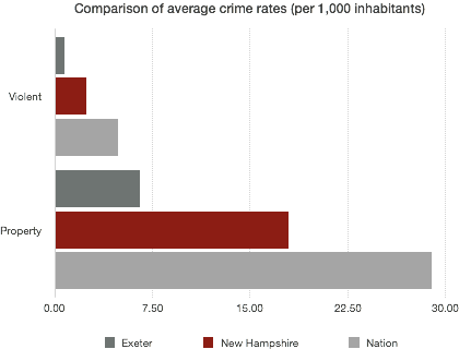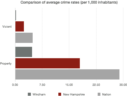 New Hampshire is one of the safest states in America, logging the 3rd lowest violent crime rate and the lowest property crime rate in the nation. The Granite State’s reputation for safety is reflected in the low crime rates of its 5 safest cities.