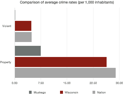 Muskego isn’t far behind. The city of about 25K in Waukesha County was originally inhabited by the Potawatomi Indian tribe, and today boasts one of the lowest violent crime rates in the state.