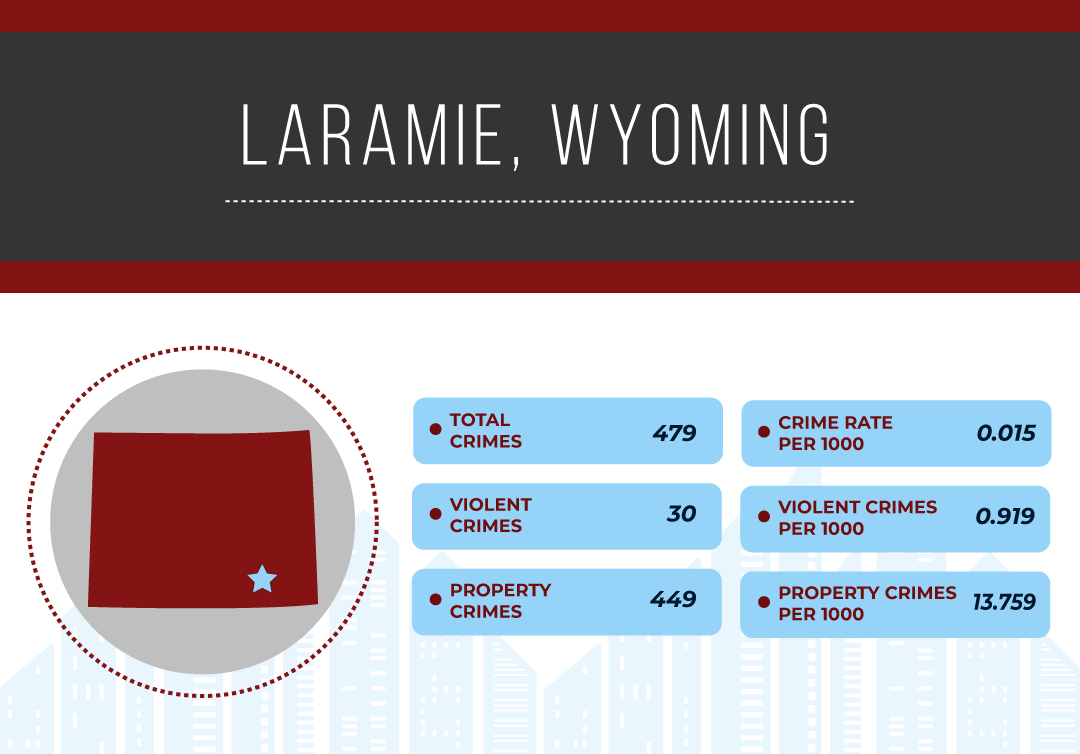 #2 Laramie actually has a lower violent crime rate than #1 Green River, yet is brought down a notch by its slightly higher property crime rate of 12.15 per 1K. The Albany County county seat had its beginnings as a chaotic frontier town in the Old West era, but is now an in-demand retirement community due to its safety, affordability, and beautiful scenery.