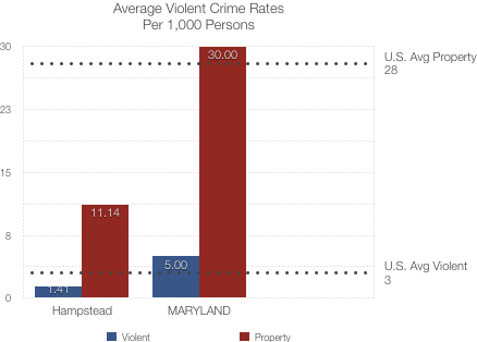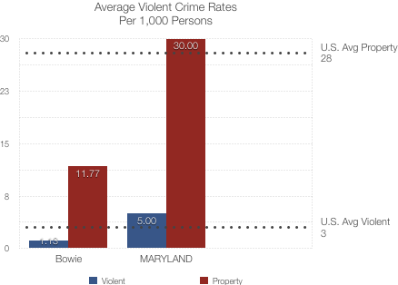 Compared to other states. Maryland’s crime situation is a bit concerning. Though property crime in the state is slightly below national levels, violent crime in the state is 27% higher than the national rate. Much of this has to do with high crime in Maryland’s largest city, Baltimore, which, in 2018, had its most violent year ever in terms of homicides.